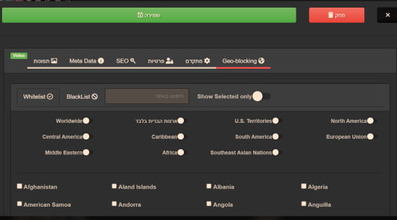 - ✅ שליטה ברמת סרטון בודד, ספריות תוכן או קטגוריות