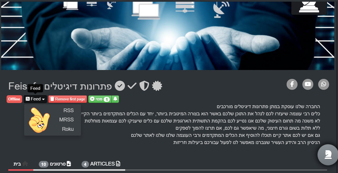 למשתמשים בעלי אתרים ויוצרי תוכן הבוחרים לנהל את התוכן שלהם עם מערכת הניהול שלנו Feisafe תהיה היכולת להציע עדכונים אלה למשתמשים שלהם. המשמעות היא שעסקים, יוצרי תוכן ואנשים פרטיים יכולים לשלב בקלות את הזנות ה-RSS, MRSS ו-Roku באפליקציות שלהם, ולספק חווית תוכן חלקה עבור הקהל שלהם."